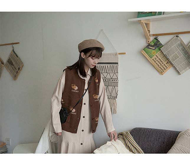 今年非常流行的針織毛衣背心,當別人穿的是素色或格紋時,你穿的是療癒身心靈的曲奇餅乾~搭上襯衫或洋裝、或是內搭在寬寬大大的駝色牛角釦外套裡面,記得還要配上一頂畫家帽!光是用想像的就很萌啊~