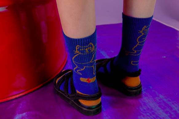 最容易駕馭的圖案單品非襪子莫屬~不管是穿著長褲時坐下來露出一丁點圖案、或是直接穿著短褲短裙讓襪子成為吸睛焦點都很棒!推薦給喜歡襪子+涼鞋搭法的人,就是要選擇這種鮮豔童趣感的襪子最適合!