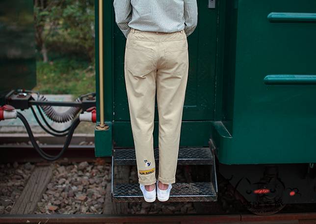 小圖案在褲腳的設計非常收斂隱晦~若其他人不經意地看到會會心一笑的小童趣!走在你身後的人勢必也會感染這種療癒的氣息。