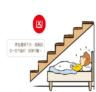 床位不能在樓梯下方,容易一直作惡夢,運勢也不好喔!