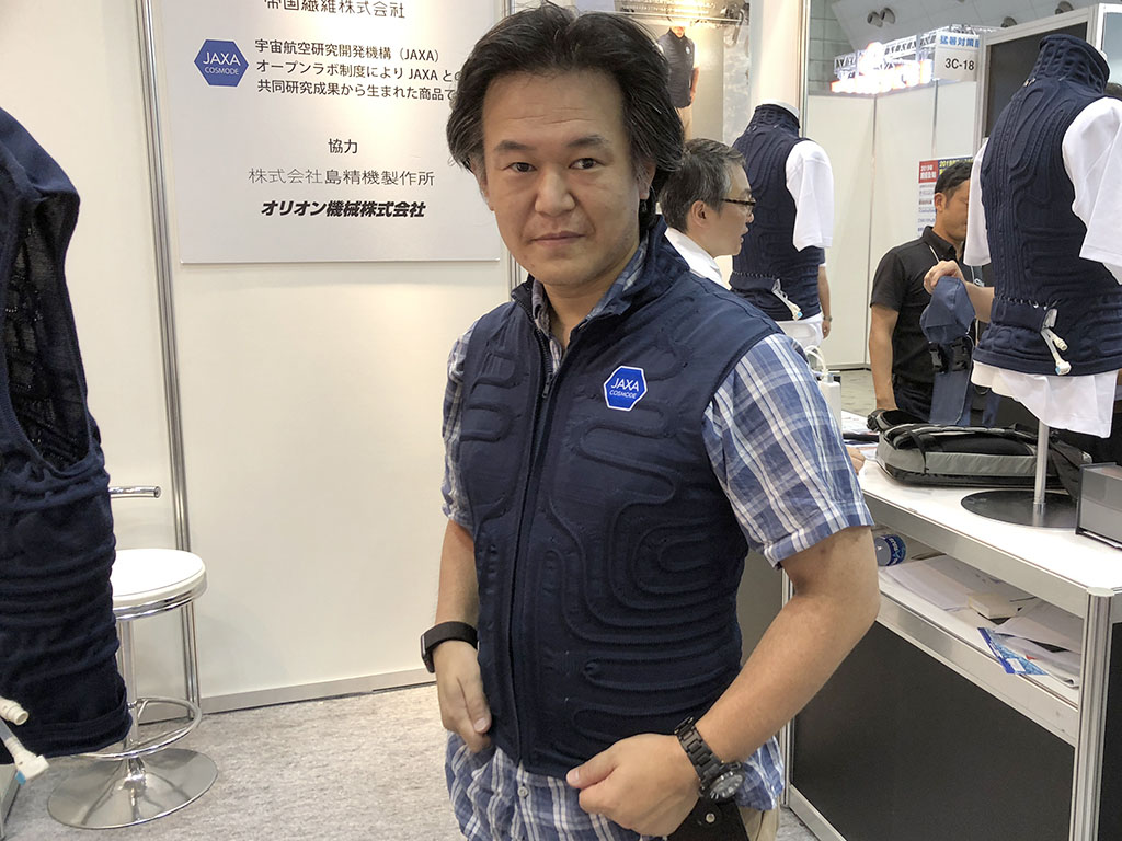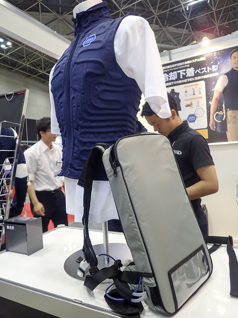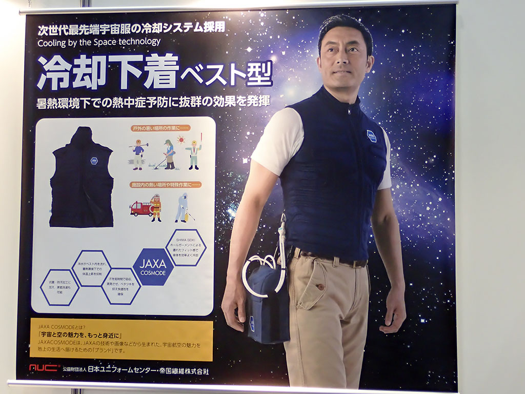 在上週,「第4回猛暑對策展」在東京Big Sight舉行。近日日本各地氣溫屢創新高,大家都尋求消暑之道,故此參展製品很多,例如本網介紹過的「長褲Cool」。其中一個由「日本ユニフォームセンター」(日本制服中心)及「帝国繊維」(帝國纖維)合展的攤位,展出一件「高科技」冷凍背心。原來,這件背心大有來頭,使用的技術是來自JAXA(宇宙航空研究開發機構)。