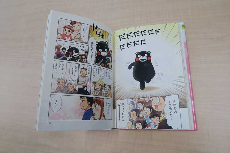 「学習まんが人物館」首次介紹吉祥物,漫畫內容是怎樣的?漫畫介紹了熊本熊的誕生過程,再講述熊本地震後,牠如何為受災者打氣,為他們帶來鼓勵。