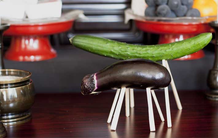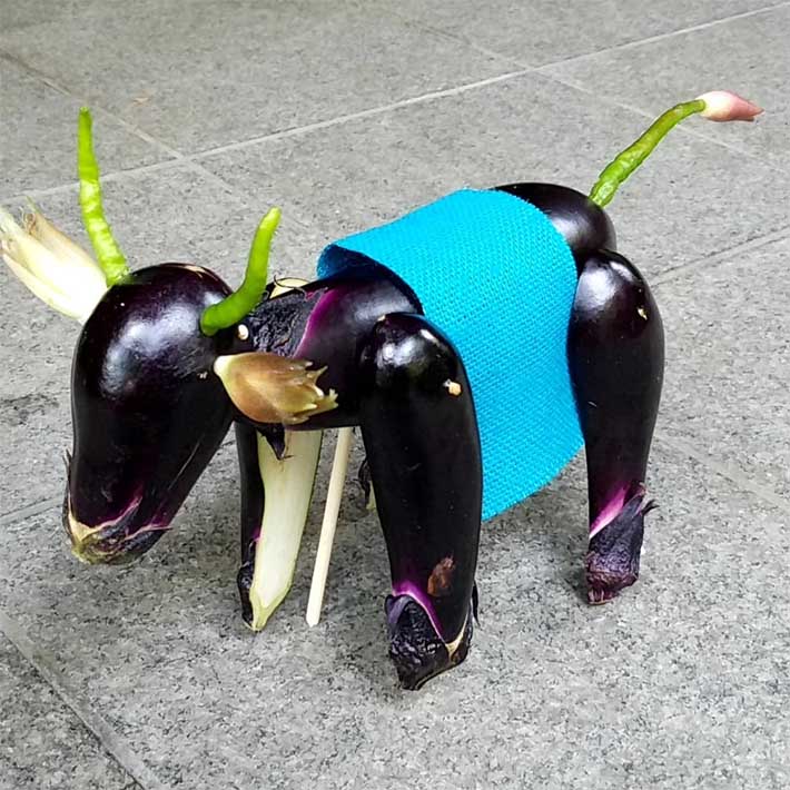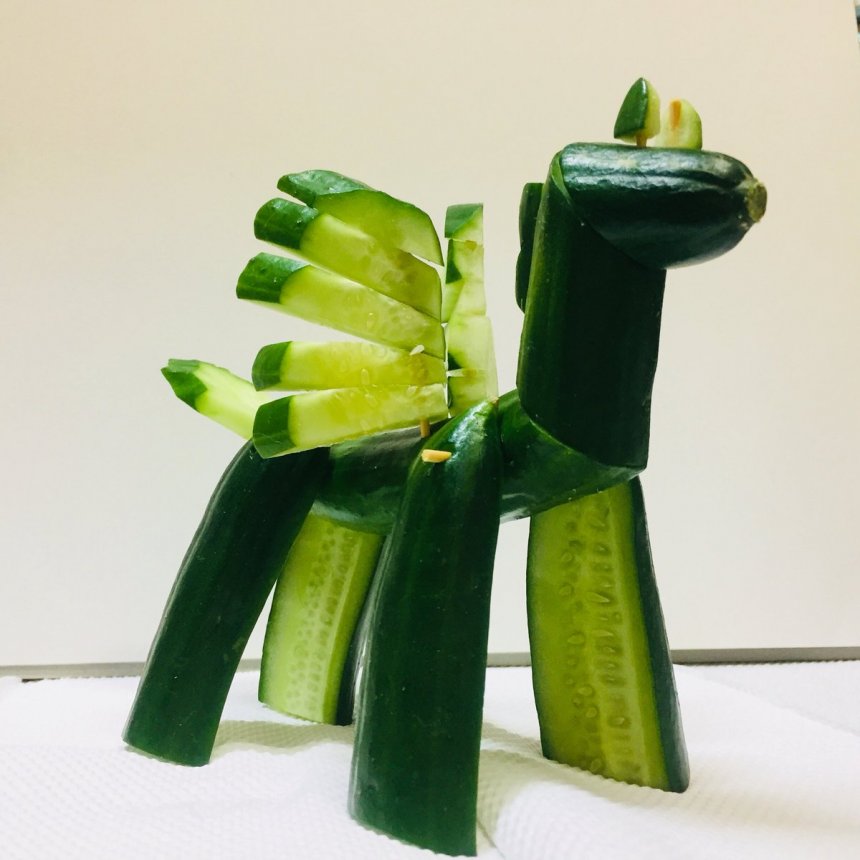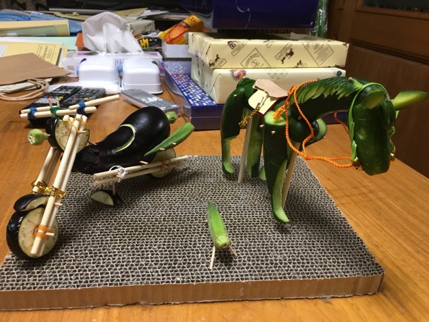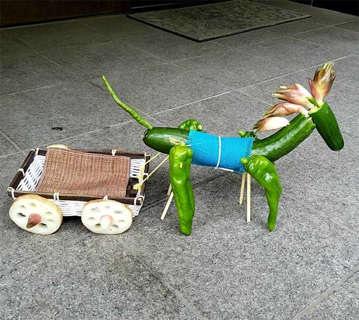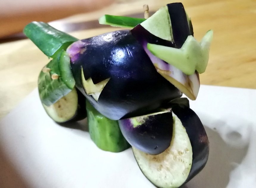 ▼ 當中有不少人不理解精靈馬的意義,將青瓜和茄子混在一起,製作食物藝術。