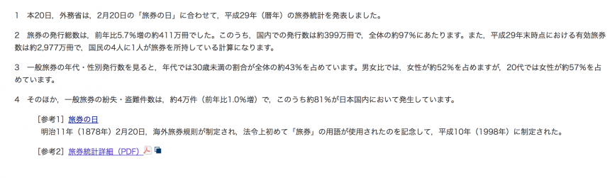 根據外務省於今年2月公佈的數字,日本政府共發出約2,977萬本護照,相對日本約1億3千萬人口,大概每4個人才有一個人有護照。