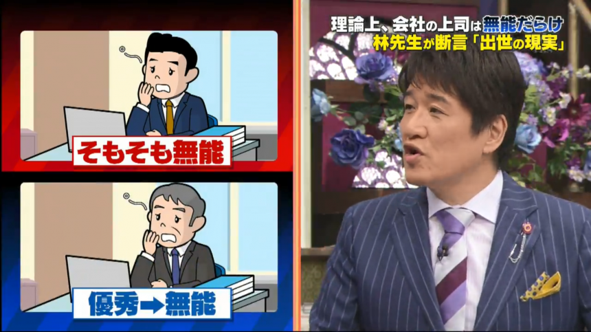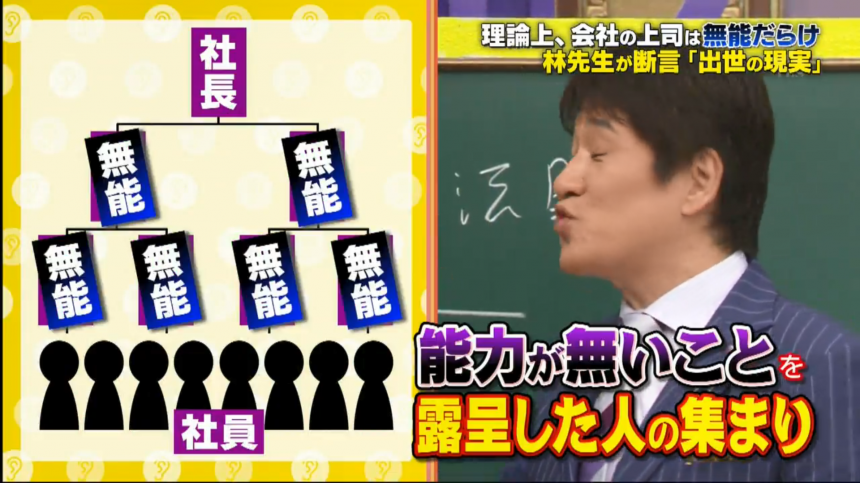 在10月14日播放的TBS電視台節目《初耳学》上,林修以Peter Principle支持自己的說法。在1969年,管理學家Laurence J. Peter提出Peter Principle,指出在等級制度中,人會因為特殊技能或特質而被擢升到不能勝任的職位,結果變成組織的障礙物。無能的上司有兩種,本來就是無能,以及由有能變無能。