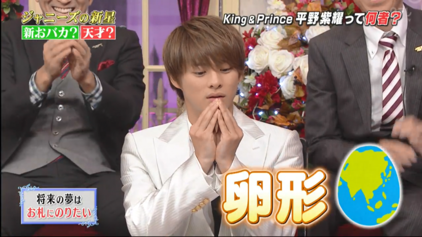 傑尼斯男團King & Prince的平野紫耀主演的電影《青澀之戀》即將上映,故這星期都會在各大綜藝節目看到他。據聞平野的官方設定是「天然」,即是無意識地做出傻呼呼的舉動,反應較遲鈍笨拙,但性格樂觀開朗。近日,他在節目上的天然發言,讓觀眾開始留意這位偶像。
