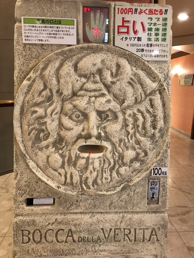 投入硬幣後,把手伸進真理之口,機器就會分析掌紋,並列印出一張預測運程的紙條。