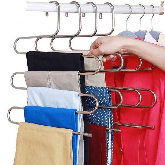 要掛的衣服超多,衣櫃空間卻不夠的話,趕快入手「s型衣架」,1次可以掛5件,正式的西裝褲、怕皺的上衣就這樣掛,立刻幫你省掉一半空間!