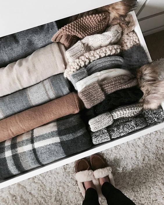 千萬不要再把衣服折完後疊放在一起,這樣不但超難找衣服,而且隔天馬上就亂了!將收納櫃分成小區塊,然後將比較不容易皺的t-shirt「直放」,不但節省空間,也不怕衣服永遠在衣櫃底部找不到!