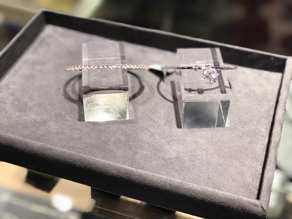 (左)玫金特別款典雅氣質滿鑽手環NT$495(右)璀璨之星華麗水晶開口手環(三色)NT$880