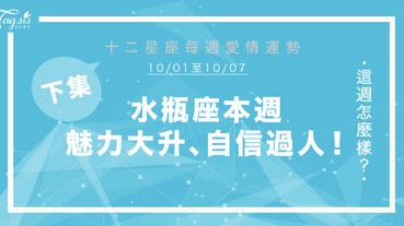 - 【10/01-10/07】十二星座每週愛情運勢 (下集) ~ 水瓶座本週魅力大升、自信過人!