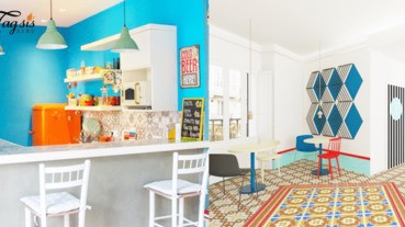 6. 符合親子生活的色彩配置:海島型木地板搭 Tiffany 藍主牆