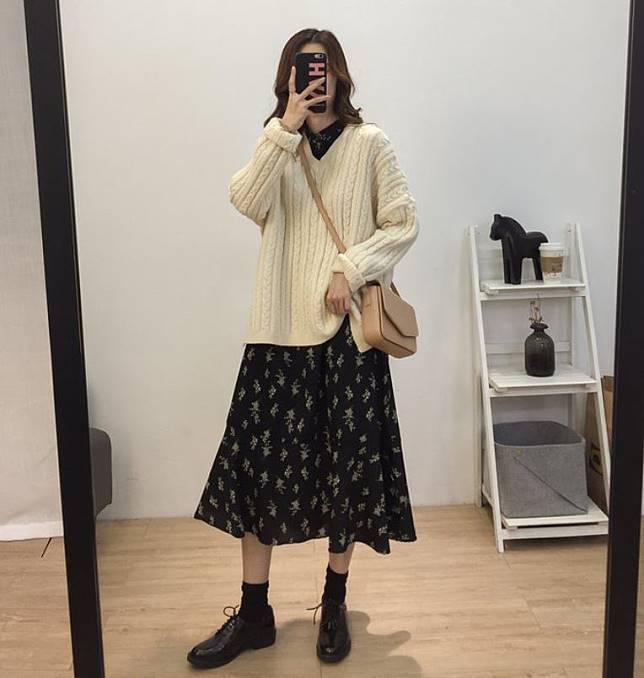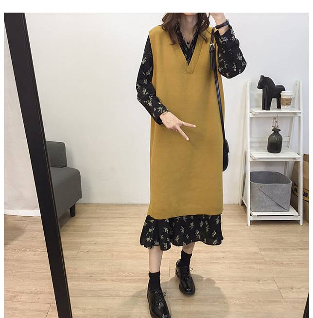 說到雪紡材質洋裝,很多人都會覺得它只專屬於夏日,但其實只要在外面加上毛衣、或是穿件有質感的大衣,它一樣很適合冬季的!尤其加上一件毛料背心,穿起來反而意外更有層次感呢!配上平底鞋或是短靴一點也不違和~