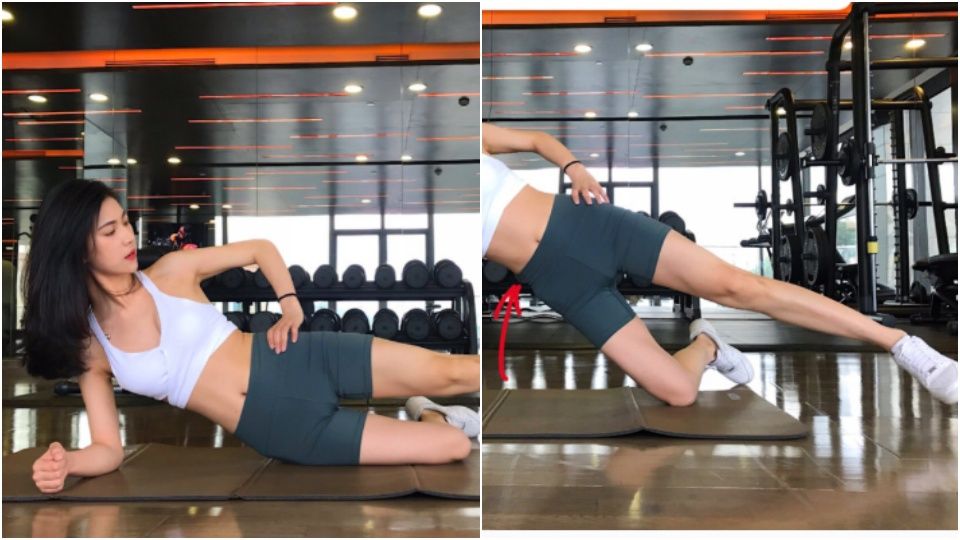 這個動作不只可以增加核心肌群力量,還能幫助維持腰側線條~一開始先側身,上方腳點地,並彎曲下方腿和前手臂作為支撐,身體、手臂與地面呈一三角形~這裡需注意的是,身體要維持一條直線,並將核心收緊~接著用側腰力量帶動身體起落,落下時屁股側貼緊地面~此動作一邊做30秒,如果想要加強運動強度,可以增加運動時間為一邊1分鐘!