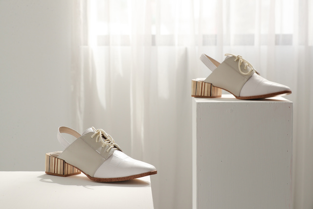 以白與杏拼色的造型鞋款,加上尖頭搭配粗跟的設計,使單品散發出既內斂又大氣的氣質品味。方便穿脫的設計讓人不再畏懼高跟鞋款,不論是褲裝或是洋裝都能表達滿分的魅力感。