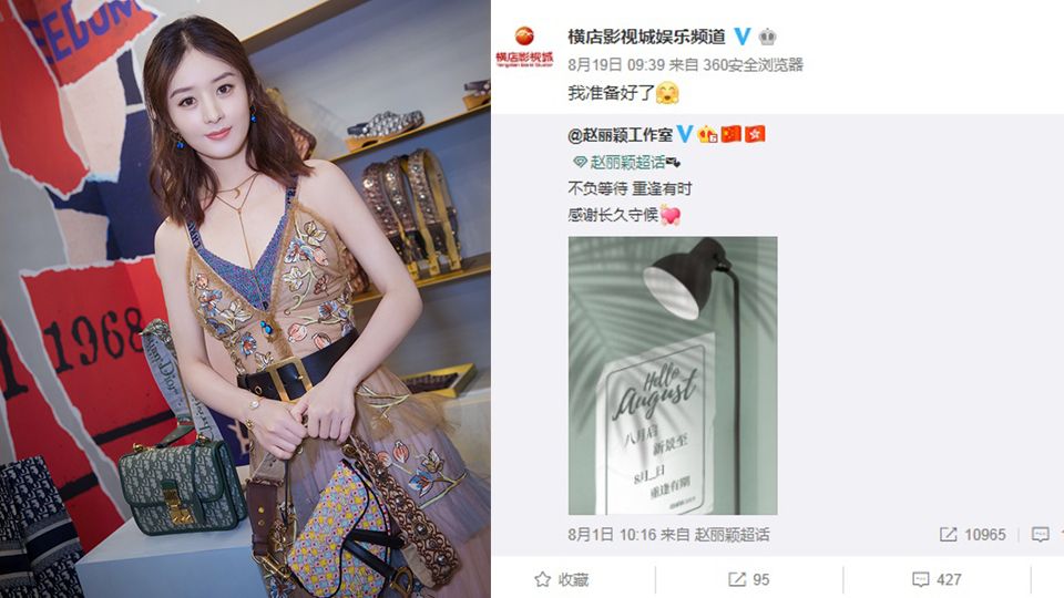 不過趙麗穎要回歸是確定的了,因為早在月初其工作室就PO出「不負等待,重逢有時,感謝長久守候」的貼文,該貼文被橫店影視城轉發,而她也將出席代言手機品牌的活動。