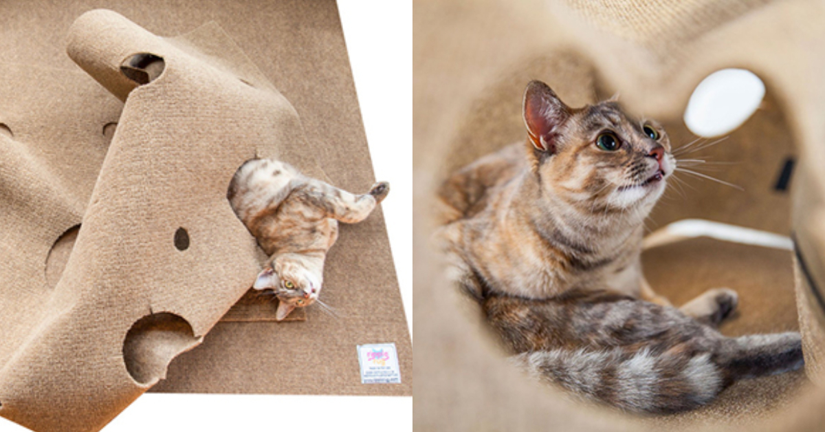 家中的貓咪如果熱愛鑽來鑽去,那這個破洞地毯絕對要收,看似平凡的一片布其實暗藏著大學問,除了防抓之外,大小不一的洞洞更是可以讓主子隨心情挑選,無論是要鑽手手鑽腳腳還是整個身體穿過去都能一次滿足~但如果預算不夠,改用家中不要的布料,把布剪出一個一個洞,主子們還是能玩得很開心的