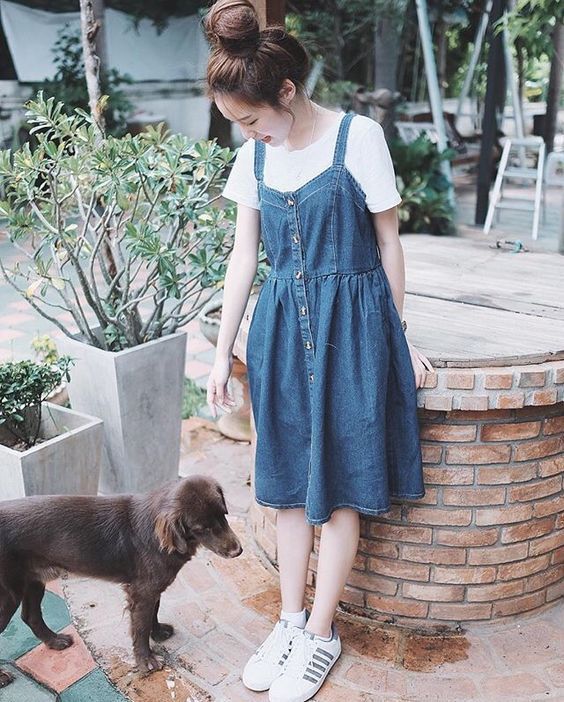內搭T-shirt或襯衣的背帶裙和褲真的超顯年輕,推薦女生選擇牛仔藍色或淡色系的背帶裙褲,感覺像個孩子一樣,一定會激起男生的保護慾!