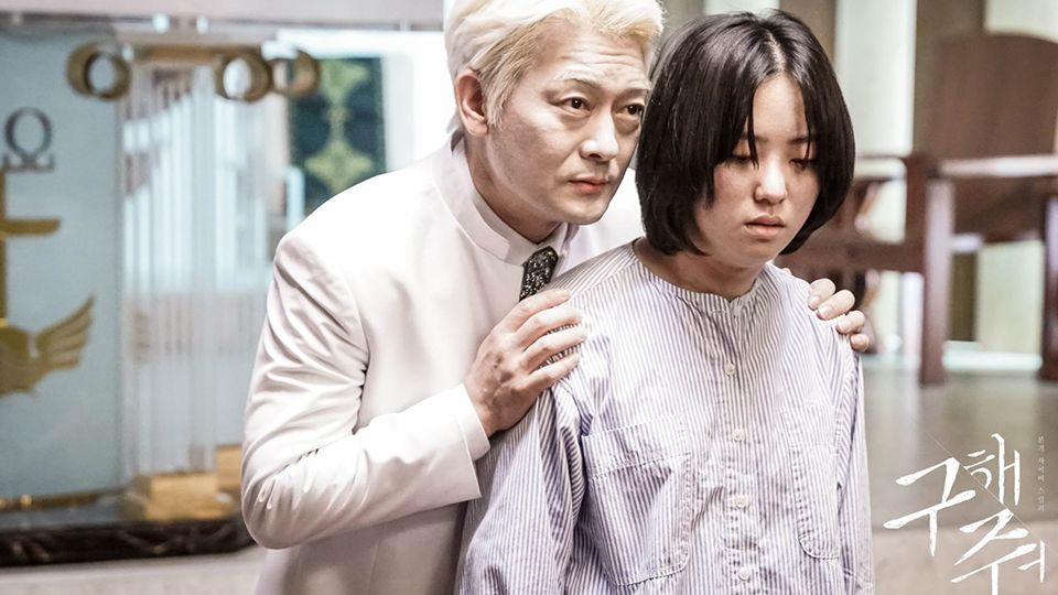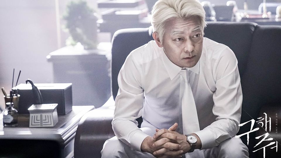 趙成夏也是一個反派專業戶,演過超多經典的惡角,在《救救我》中飾演邪教組織新上帝教的壞蛋牧師,不僅白髮、白西裝,連臉都弄超白超詭異,光是服裝扮相就夠恐怖了,盯著人看的時候更嚇人!