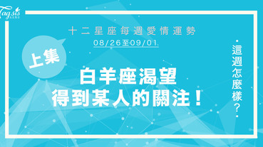 - 【08/26-09/01】十二星座每週愛情運勢 (上集) ~ 白羊座渴望得到某人的關注!