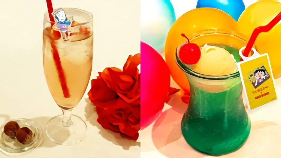 為了迎接櫻桃小丸子30周年還推出特製哈密瓜漂浮蘇打,一旁附贈可愛的紀念吊牌,非常經典~而另一款則是符合花輪高貴形象的玫瑰蘋果西打,還附贈高級的松露巧克力,讓人立刻想到有一集小丸子為了吃到花輪帶的松露巧克力,還幫花輪背水壺的趣事,只能說小丸子真的為愛犧牲很大啊(笑)!