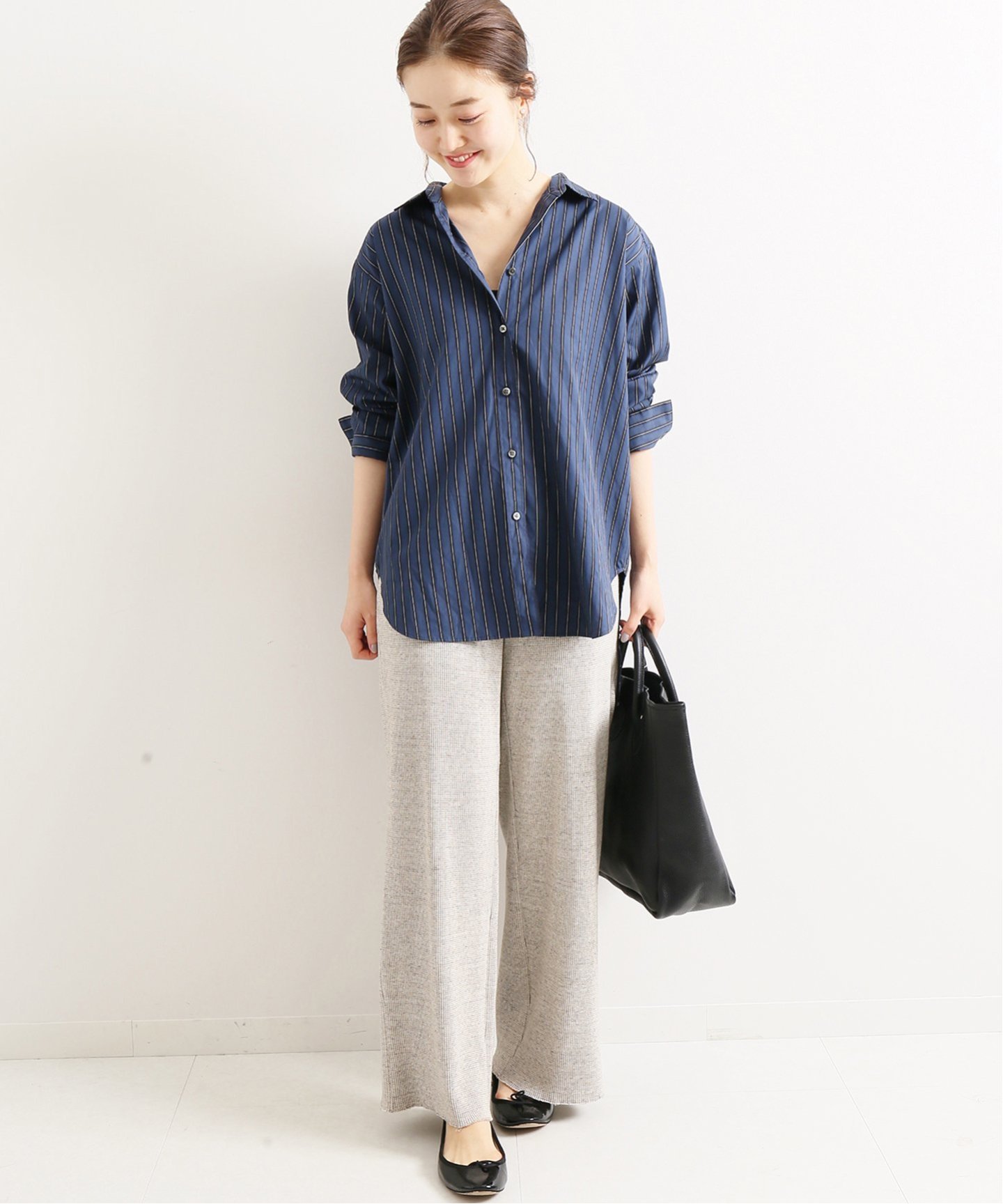 正要進入工作狀態的星期二就換上一件直條紋的深藍色襯衫,經典的直線條散發出了幹練的上班族氣勢,而沉穩的深色配色也讓整體個性更貼近大人的成熟氣質。