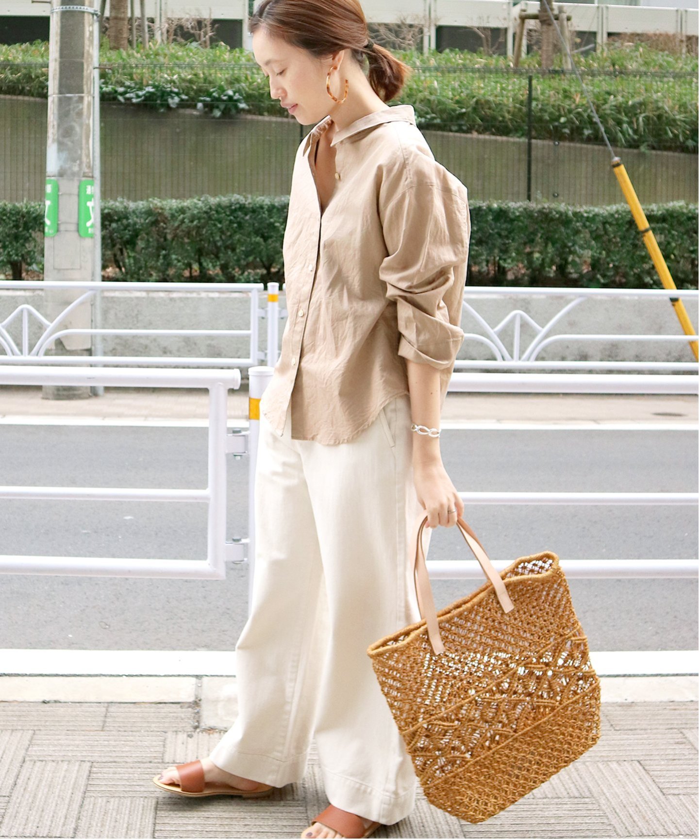 來到了輕鬆的星期三,在這一個小周末日就以溫暖的駝色襯衫來放鬆一下心情。搭配上清爽的米色寬褲,寬鬆的輪廓線條也讓人充分感受到辦公室女生在周間想小歇片刻的心。