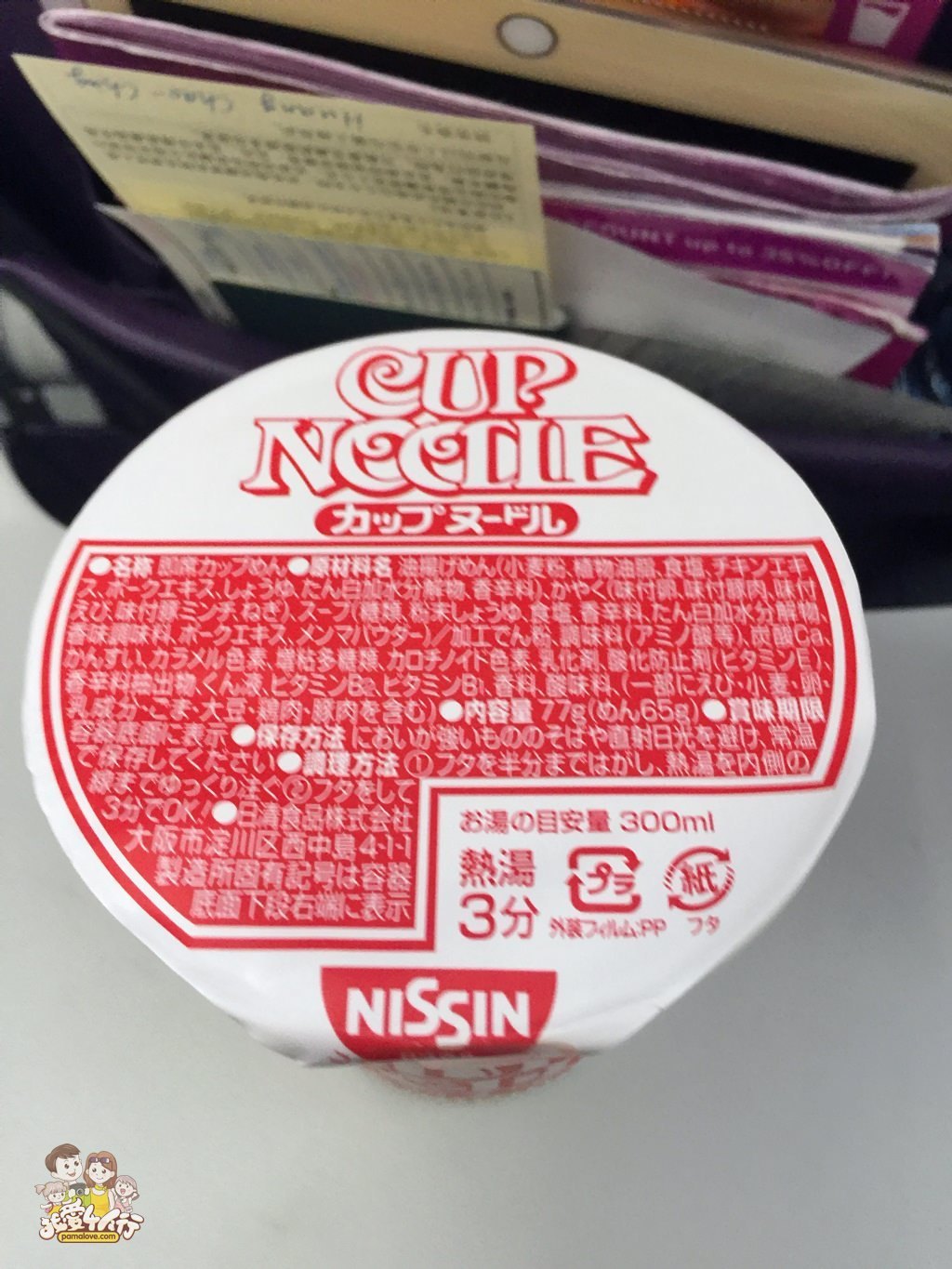 這個日清合杯麵要泡三分鐘,日清的傳統包裝就是白底紅字,在賣場當中其實很好認,如果看了這篇文讓你突然想吃,不妨可以在台灣的各賣場(例如百貨公司地下室)買來嚐鮮喔。(嗯,邊吃日清杯麵邊看這篇文章,個人覺得很可以 XD)