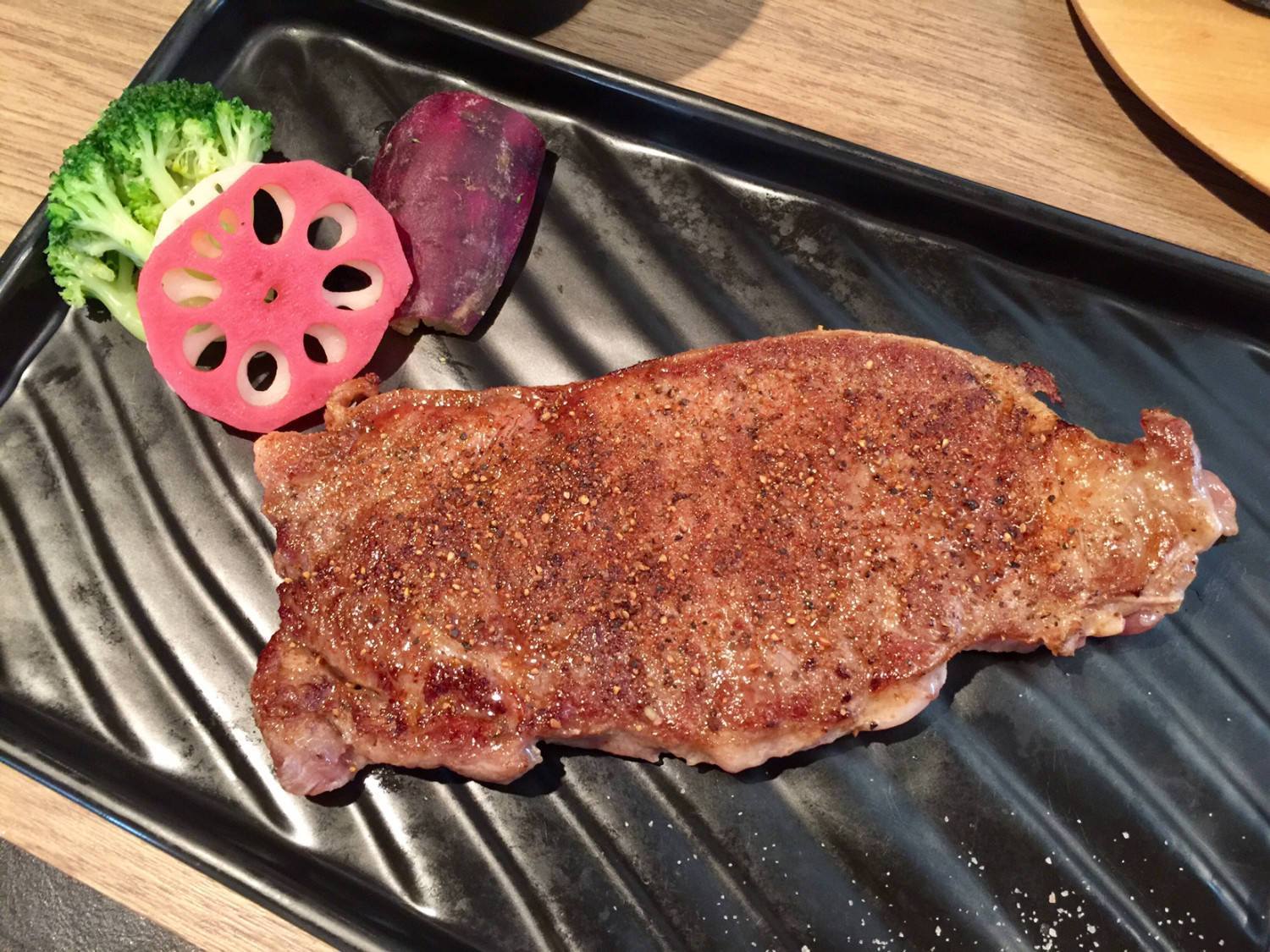 這道是朋友點的黑胡椒香煎牛排。
