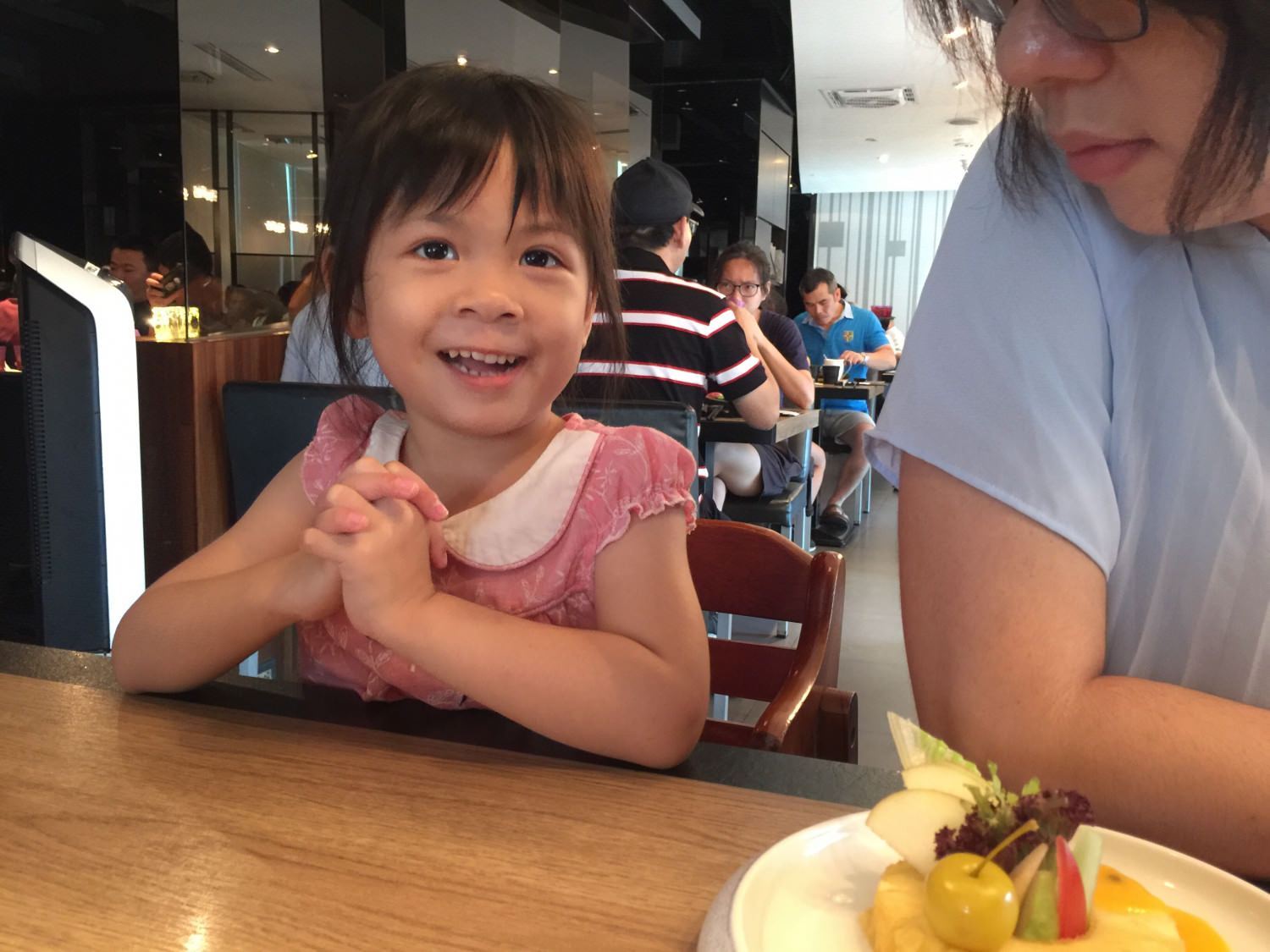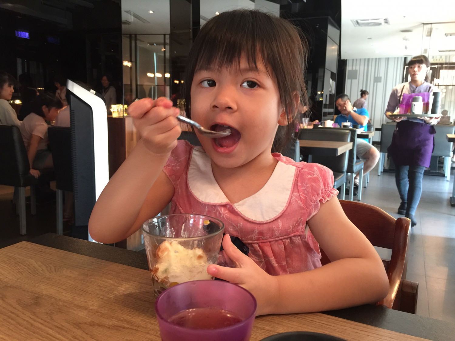 小拉吃的超開心,她今天穿的是非常浮誇的洋裝。(感謝教會阿嬤的餽贈)
