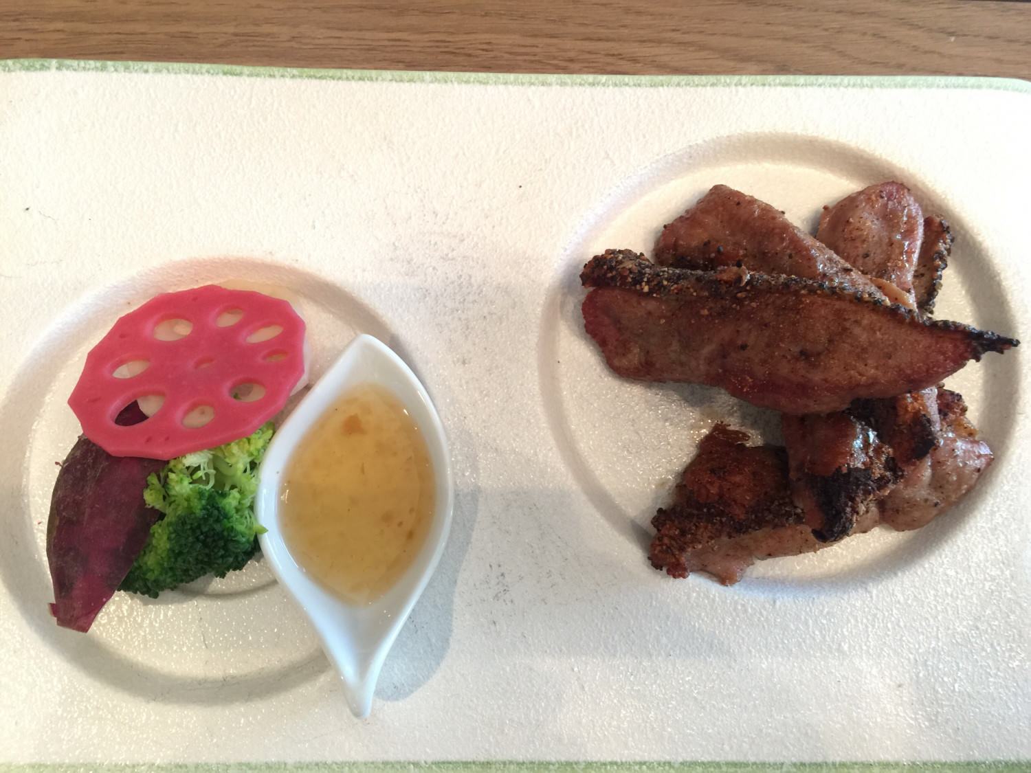 這是艾瑪點的果香酥烤鴨胸。看起來好像沒有很多,但是份量其實相當足夠,鴨胸的外頭烤得香酥、裡面維持嫩嫩的口感,也相當不錯吃。