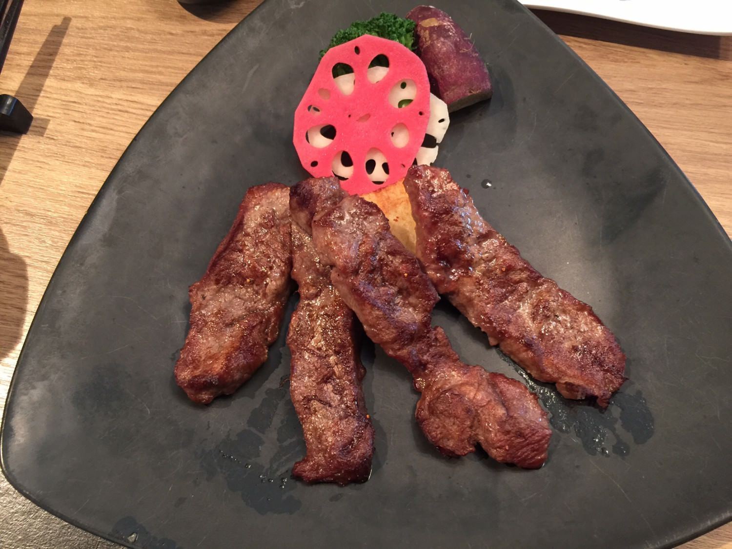 但是陶板屋的香蒜瓦片牛肉,即便是全熟也相當好吃,我覺得不會老到硬到不能下嚥,當然還是得慢慢切慢慢吃。