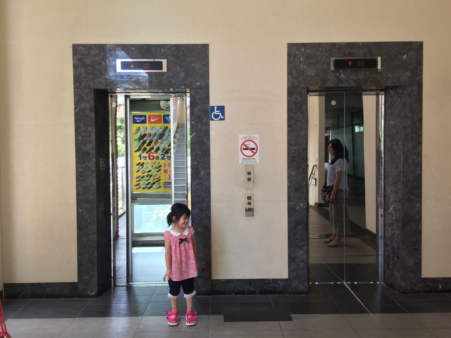 可以看到上圖是直達停車場的電梯,進電梯後直接上二樓,出來就是連接到陶板屋成大勝利店的空橋了。