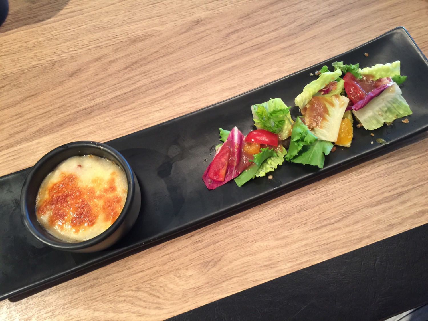 焗牛肉上面的起司使用的相當多,吃起來的味道很足,但是不會太鹹,配上旁邊的生菜整體很均衡,這是一到可以讓胃醒過來的前菜,準備迎接下面一連串的餐點。