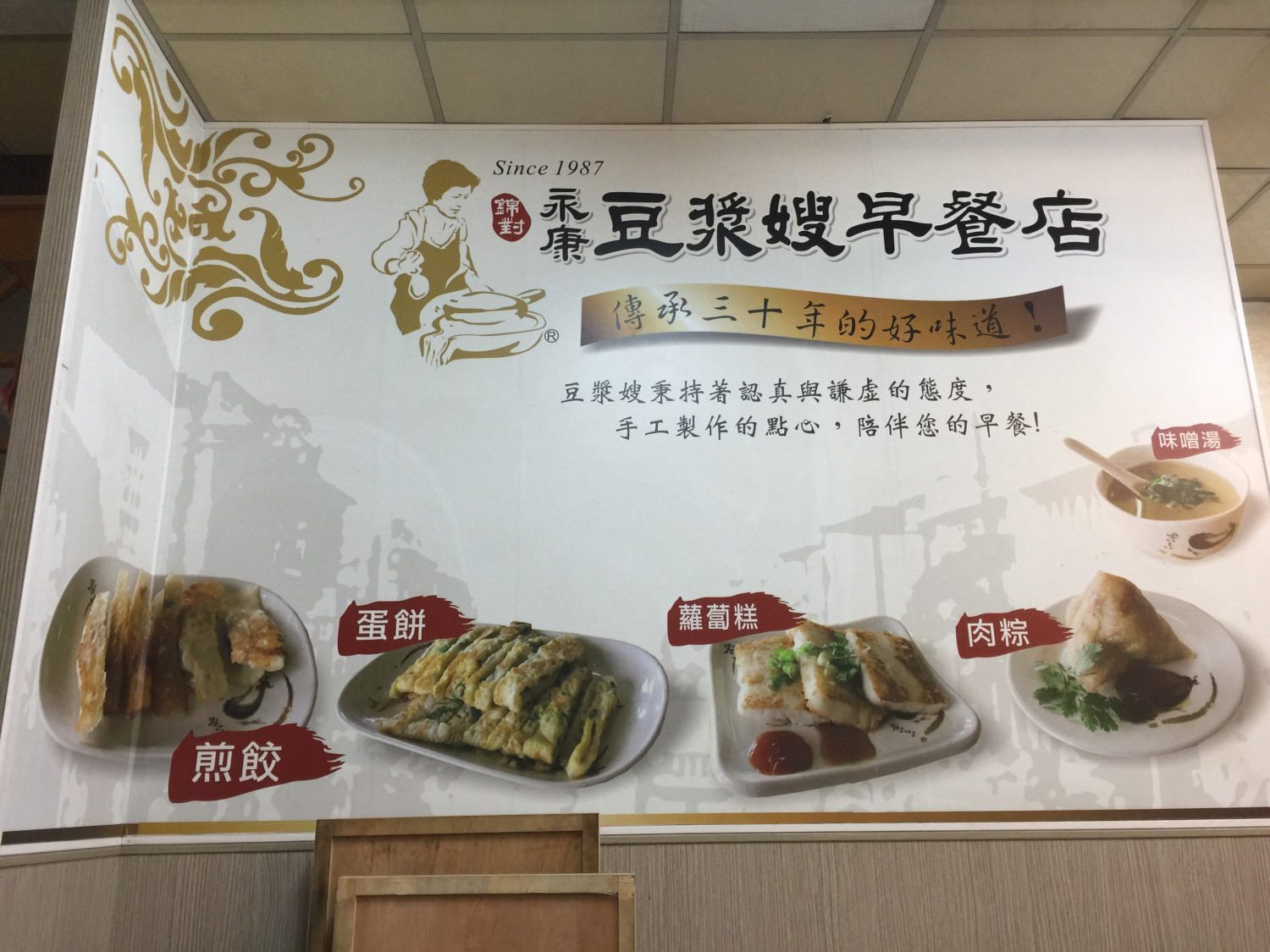 原來永康豆漿嫂已經傳承三十年了?! 海報上應該就是它的招牌餐點: 煎餃、蛋餅、蘿蔔糕、肉粽等等,不過我吃過得好像只有煎餃跟蛋餅。