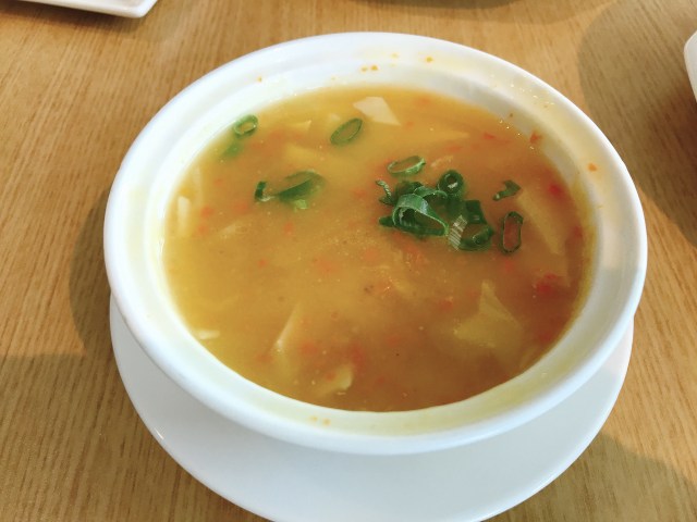 這道羹湯的份量也好小~~~真的是一人份,但這份量要$150的確稍嫌貴了一點,裡面大概有3個蝦仁,我們研究了很久,究竟這道羹湯裡面橘色點點是不是蟹粉呢~~~結果發現,只有部分的是蟹粉,其他都還是紅蘿蔔碎片呢…..