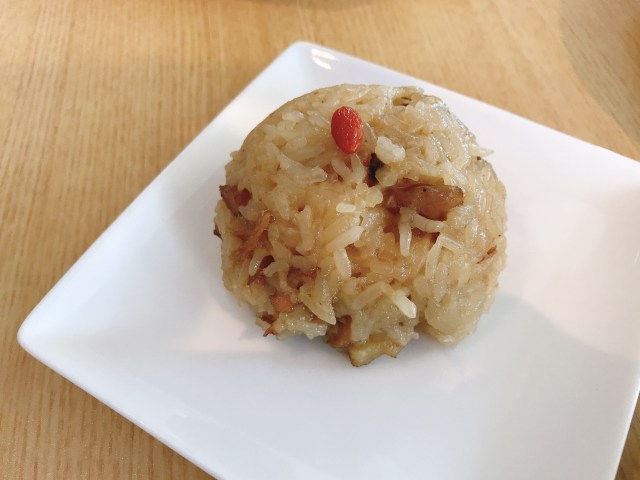 看到這個份量,一個小盤子上面一座小飯糰,我跟爸爸相視而笑,這也太小了吧~~~~~~~~~~而且就是非常非常普通的糯米飯,有點無語不予置評,非常後悔點了這道菜……