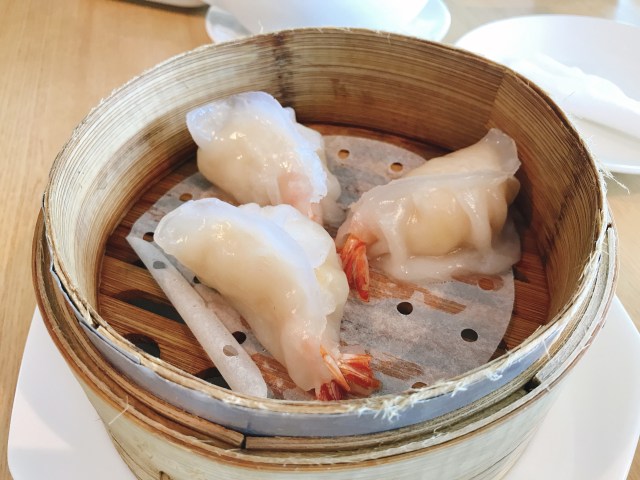 這道蝦餃皇,外皮很Q彈,內餡有飽滿的魚漿及一整隻蝦,海鮮味道相當清甜!