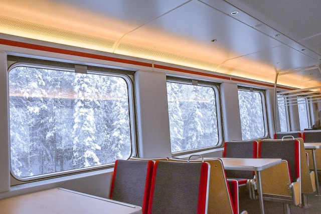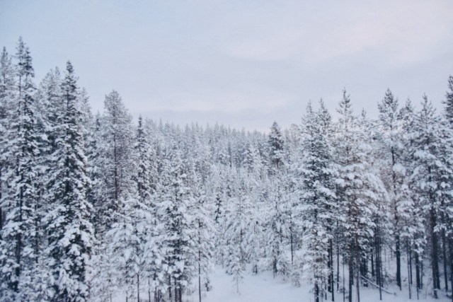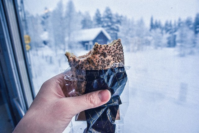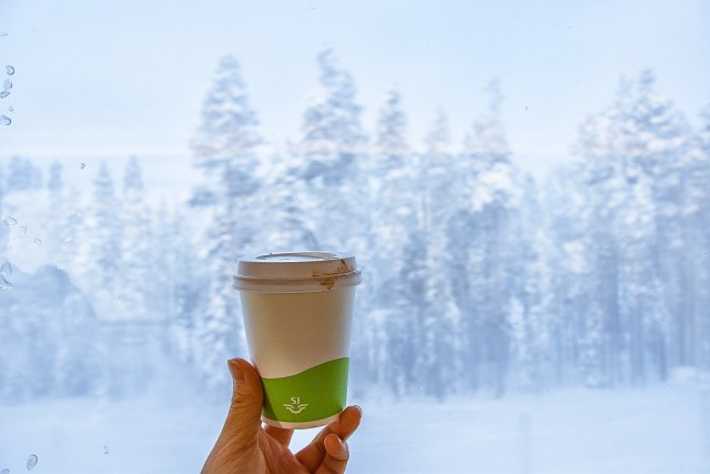 在歐洲火車上,暖氣都開得非常強,甚至還會到熱到受不了的程度,但窗外可是-15度的冷冽低溫,所以我們事先在車上換裝穿上雪地裝備,準備進入冰天凍地的北極圈小鎮!