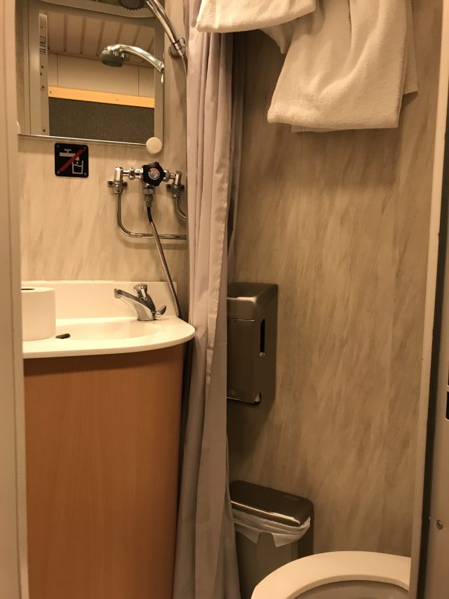 每一節車廂都有簡便的浴室和廁所,但因為普通艙等沒甚麼看頭,我就沒拍照了~