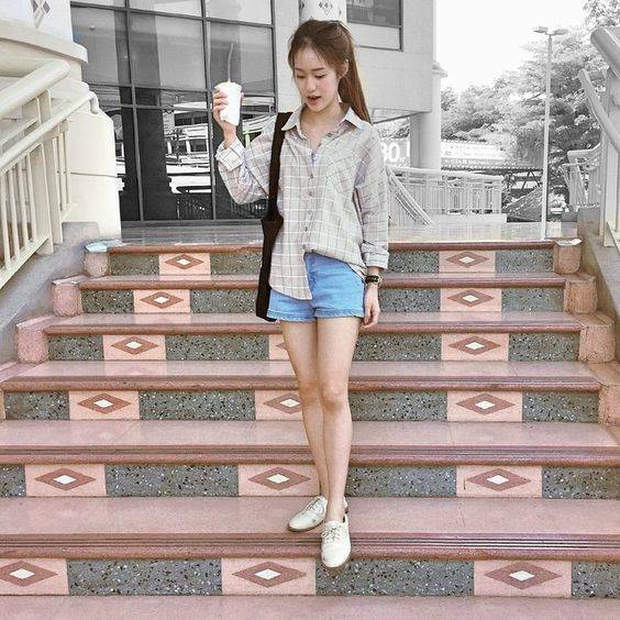 一件頭襯衫絕對是懶女生的恩物,只需要一件衣服就可以出門,就連襯搭也不需要!春天一件長襯衫,然後下身穿一條短褲作打底,正面看完全看不出有短褲的存在,可以帶出一點小性感~~