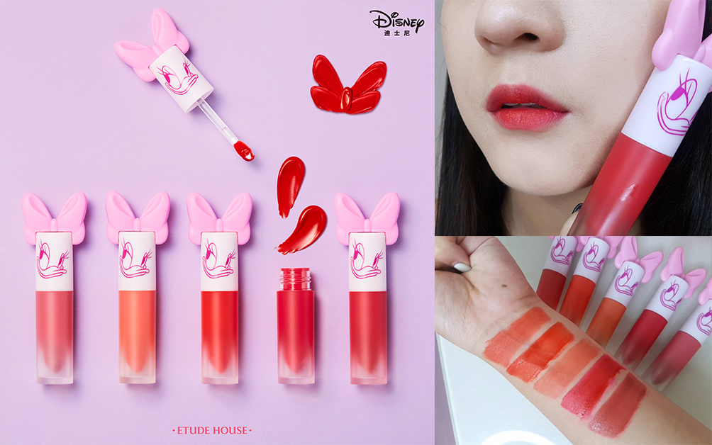 粉紅色大大蝴蝶結,襯上雪白毛皮,在卡通裡總是有點瘋癲卻善良的黛西,這回不再只是配角!換上新裝今年黛西與《Etude house 》正上演一場甜蜜邂逅!粉紅色的外型搭配透明管身,不論是頰彩、唇妝還是眼影盤,唐老鴨與黛西這對傻甜CP大方曬閃跳上你的彩妝盤 ~ 不只立體包裝設計讓人超心動,全系列彩妝組,百搭又應景的完美調色,讓你絕對不踩雷!