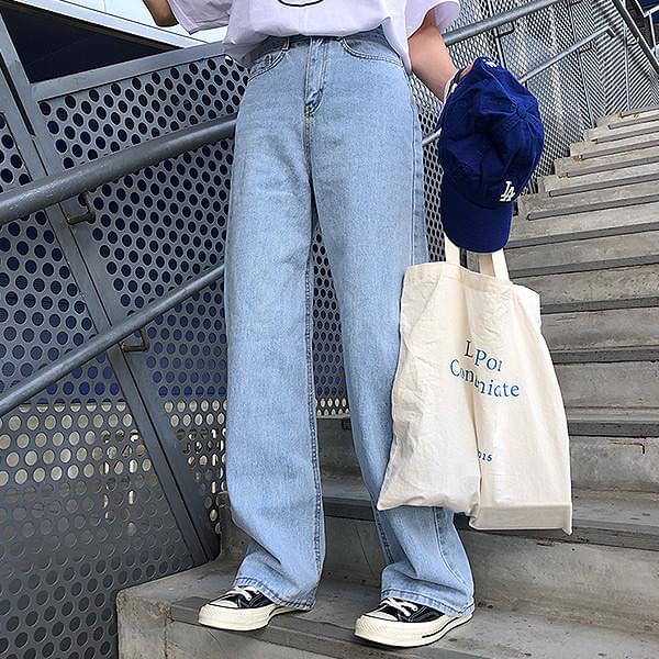 牛仔落地褲非常百搭,搭襯衫搭t-shirt都沒問題