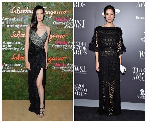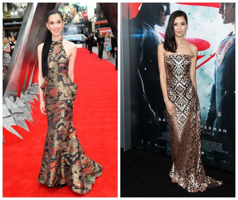 (左) 2013 年,出席電影《金鋼狼:武士之戰》英國首映會,一襲削肩圍脖禮服小露性感肩線與鎖骨,濃濃的日式印花無疑彰顯東方韻味,俐落長馬尾更添俐落靜雅。(右) 2016年,第二次出演電影依然是好萊塢強檔大片《蝙蝠俠對超人:正義曙光》,劇中飾演雷克斯的助理Mercy Graves,精明能幹的形象與演技實力,讓她在好萊塢的地位更受肯定。選擇以一襲佈滿金屬感與幾何圖騰的禮服閃耀出席首映會,浪漫大旁分一展慵懶迷人風采。