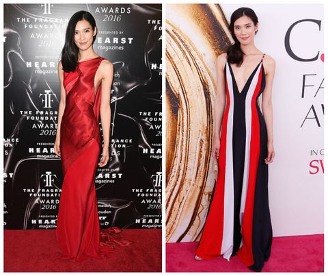 一身大紅禮服與時髦濕髮,將Tao的美麗完全展現。