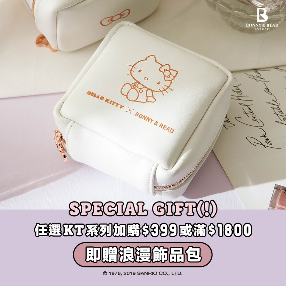 BONNY & READ為回饋廣大粉絲的支持,即日起推出,任選HELLO KITTY系列飾品,就可用台幣399元加購聯名HELLO KITTY的「浪漫飾品包」,消費滿台幣1,800元則可直接帶回家~