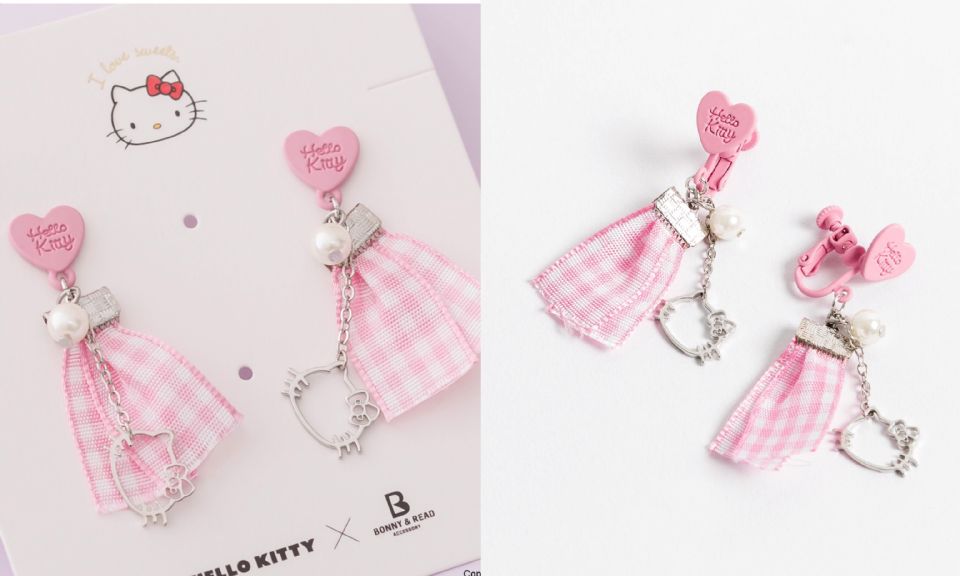 這次的浪漫主題系列,是以擁有甜美浪漫夢想的女孩們為出發點,結合超可愛又魅力十足的HELLO KITTY,讓大家能同時感受到BONNY & READ以及HELLO KITTY所想要帶給大家的浪漫氣息!飾品以經典的HELLO KITTY面貌和蝴蝶結為設計原型,不論是耳針還是夾式的耳還,任何人都可以擁有!