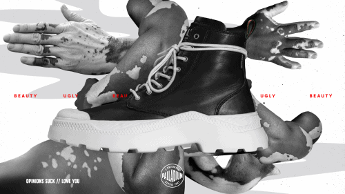 來自法國的 Palladium,這次推出高筒款 Pallakix 90 TX 與低筒款 Pallakix 90 Low 兩大系列,並同時設計三款配色,以 Ugly Beauty 為題將近年大勢的醜時尚風格融入在視覺裡,而過去一直以來都以男性為主的形象照,這次更運用活潑街頭的方式拍攝,完美的扭轉 Palladium 給人的形象。