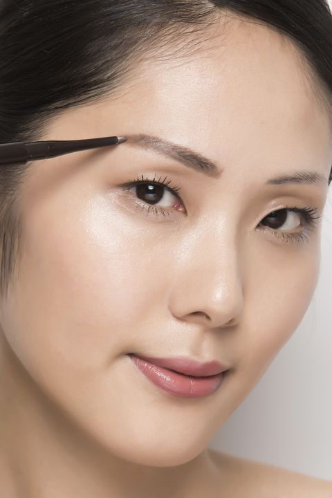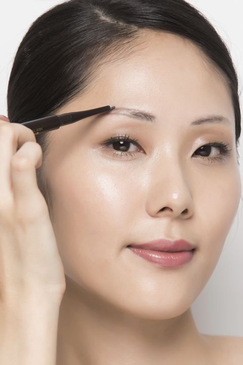 接著,一樣使用設計師斜角眉筆再於眉毛上方同樣畫出一道平順的輪廓線,勾勒出眉型的範圍。粗細適中的明星氣場平眉適合大部分台灣女性用來修飾臉型,太粗的韓式平眉若沒搭配好整體妝容,反而容易顯得太突兀!