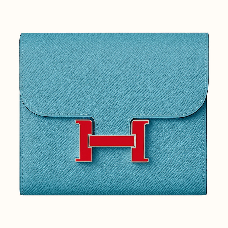 愛馬仕一直以來就不常宣揚品牌 Logo,但這款名為 Constance 的包款,巧妙的將品牌字首 H 設計成扣環,讓俗名為康康包的它,了愛馬仕旗下少見的 Logo 包,這次以康康包圍延伸概念設計的短夾,再扣環上有別於過去包款使用純粹的金屬,皮夾的 H 字樣搭配琺瑯鑲嵌,配色上則用鮮豔的撞色製造出活潑感。